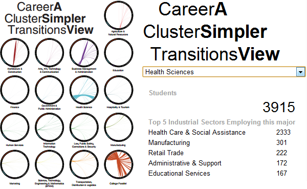 How does a community college major relate to the eventual industry of employment? Now you can interact and explore the relationship between Iowa community college students and their eventual employment sector or your computer or mobile device. This is an update to a static poster I developed a couple of years ago.