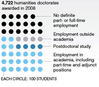 The New York Times has an article on the hardships of a humanities Ph.D. Among the highlights: it takes an average of 9 years to finish a humanities Ph.D. (if you do); high amount of debt (over $25,000); and the old age of graduates (35 years-old) which means less time available to recover all of that money.